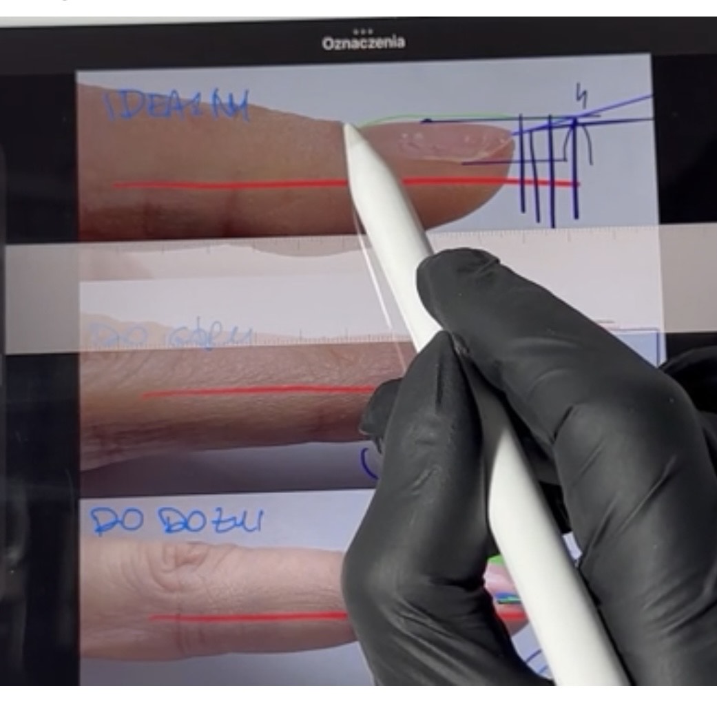 – Różnice między paznokciem idealnym, rosnącym w dół i w górę