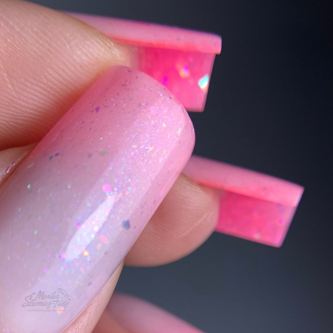 – budowa szkieletu w różowym kolorze żelu z drobinkami