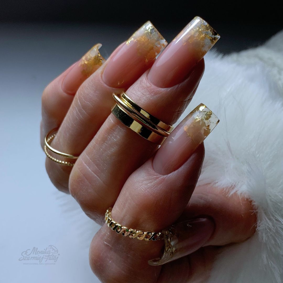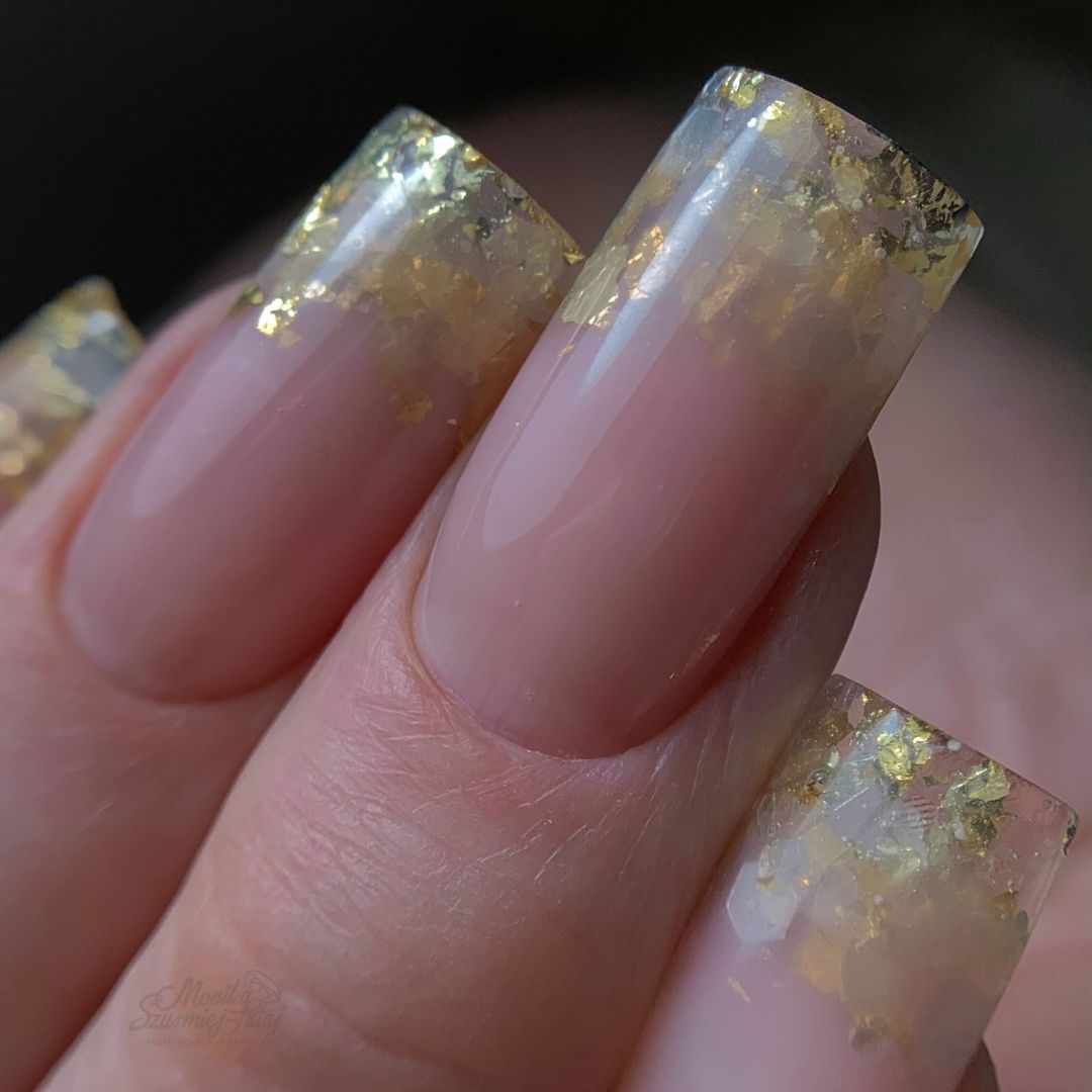 – ozdobienie wolnego brzegu drobinami i foliami
