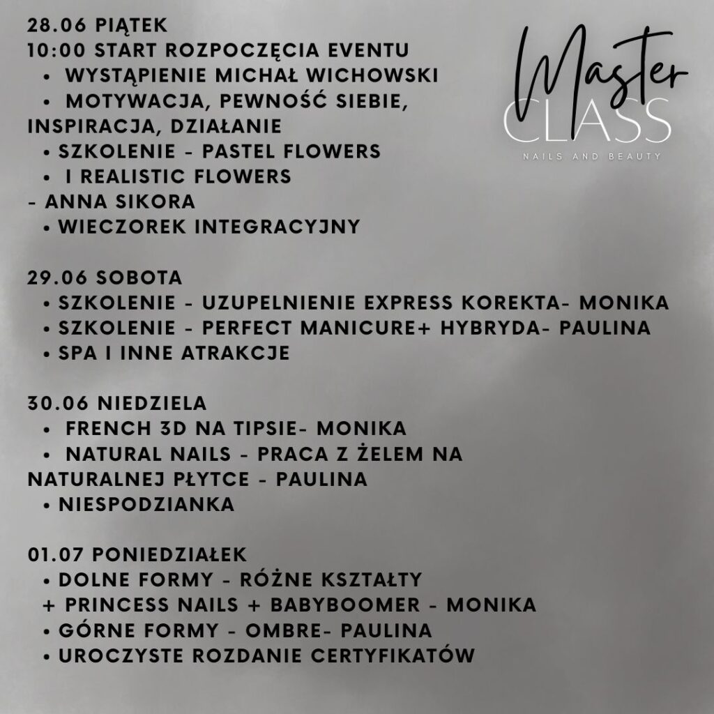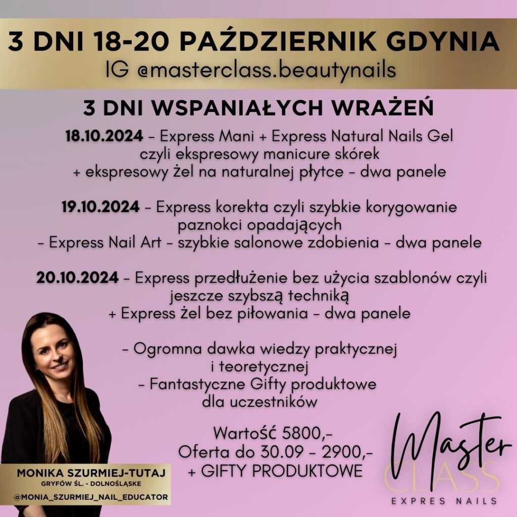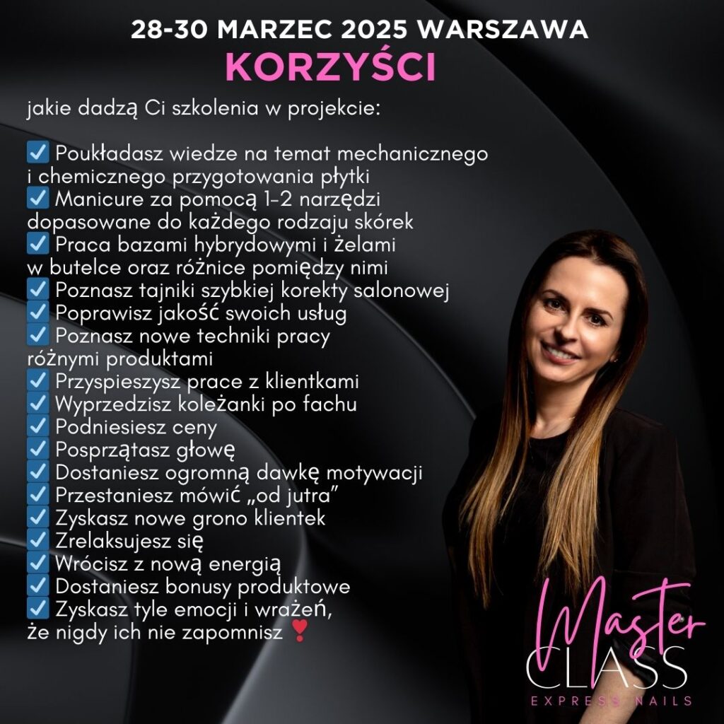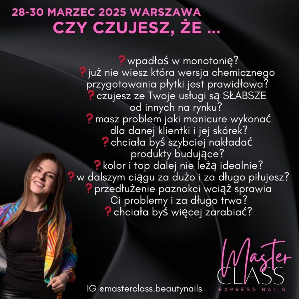 Już ………. 2026 r.  do ……… 2026 r. widzimy się podczas wspaniałej edycji MASTER CLASS Beauty Nails, na którym nie może zabraknąć właśnie Ciebie!