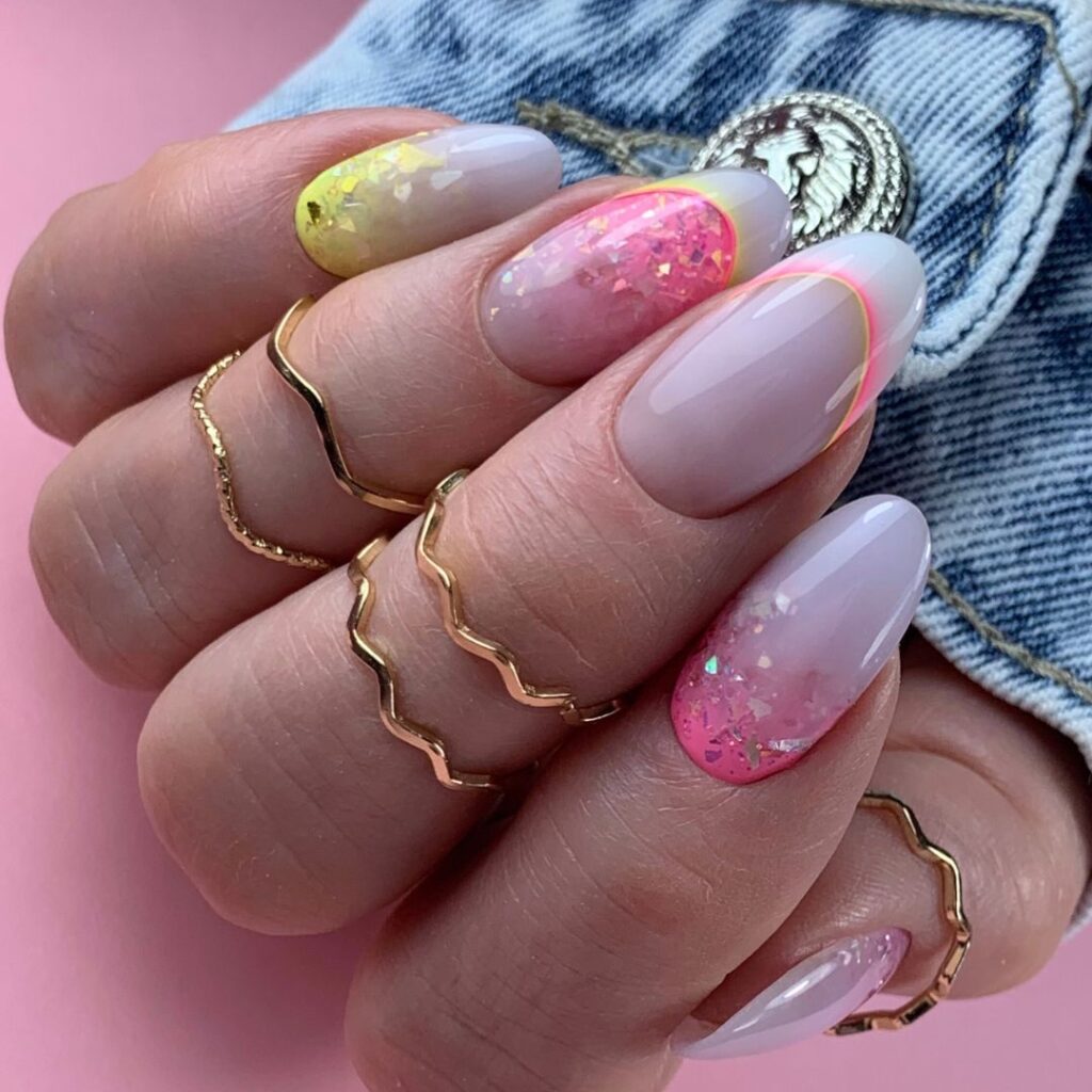 – szybkie przedłużenie na tipsie w kształcie migdał i kwadrat,
