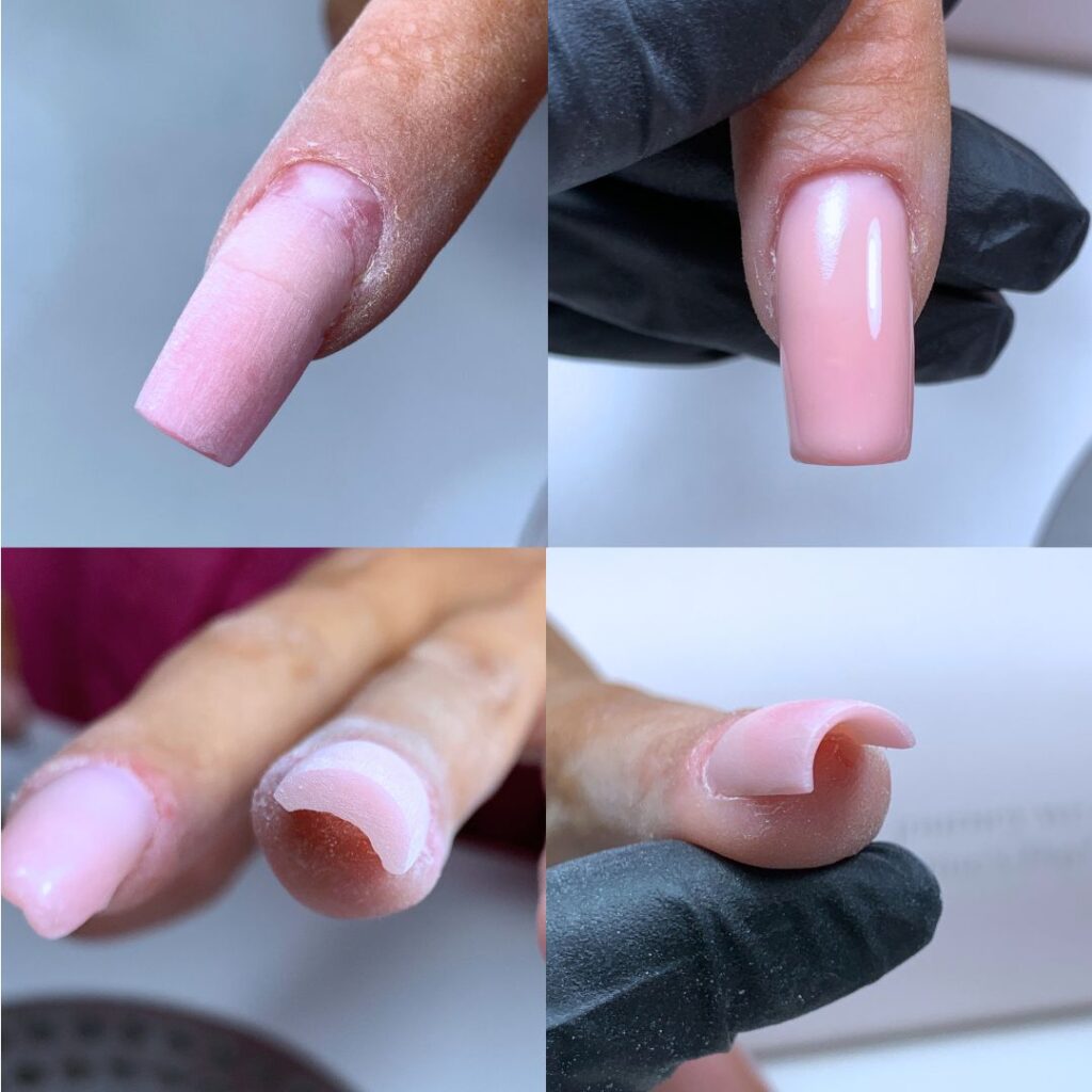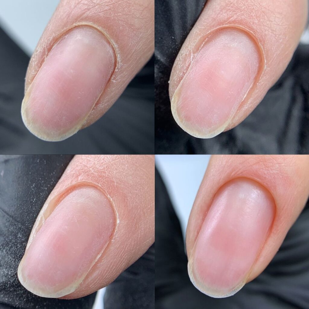 – Mechaniczne i chemiczne przygotowanie naturalnej płytki oraz wałów okołopaznokciowych