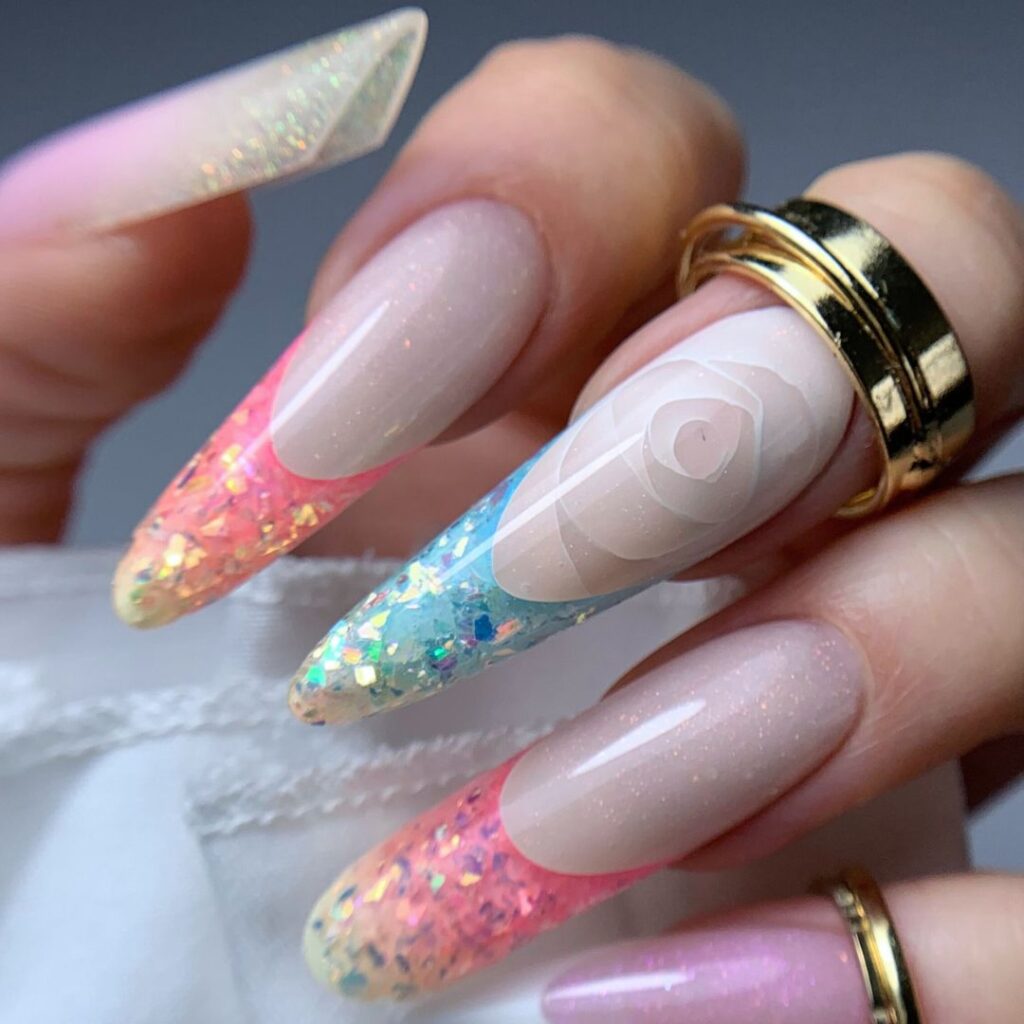 SOLD OUT - Hit - - Kształty salonowe MIGDAŁ i KWADRAT + PRINCESS NAILS + NailBoutin - RainbowNails - paznokcie dwukolorowe
