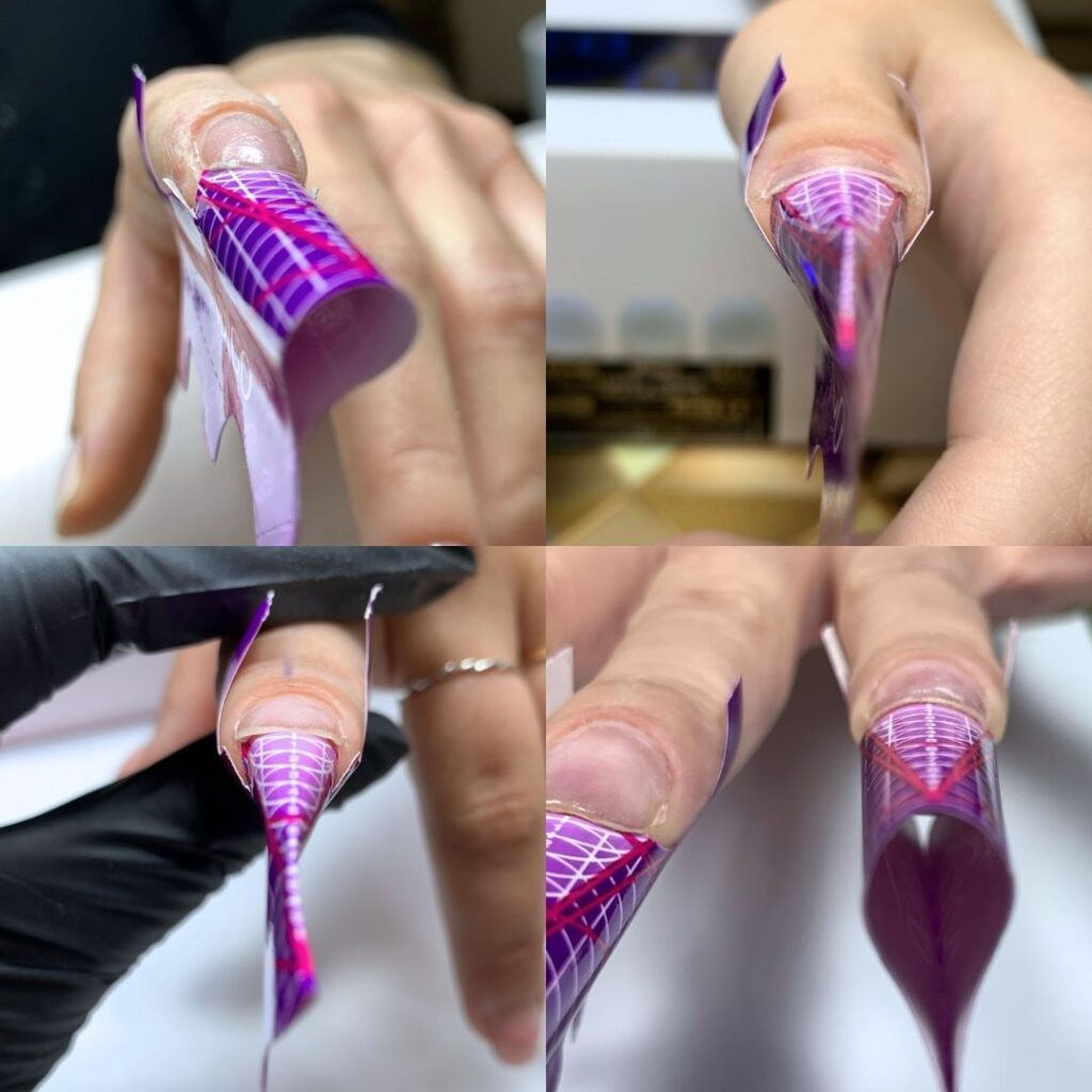 – Podkładanie szablonów pod dany kształt paznokci naturalnego